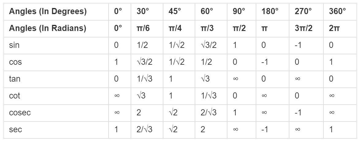 ত্রিকোণমিতি অধ্যায়ের সূত্রসমূহ