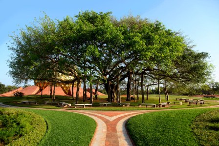 হার ল্যান্ডস ক্লোদড বিউটিফুলি উইদ হার ট্রিজ ইন ফ্লাওয়ারিং ব্লুম,