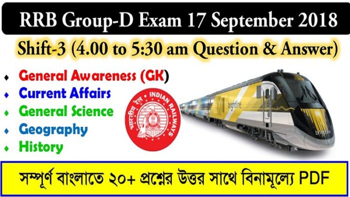 রেল গ্রুপ ডি পরীক্ষা ২০১৮ প্রশ্ন || ১৭ সেপ্টেম্বর ২০১৮ || বিনামূল্যে পিডিএফ