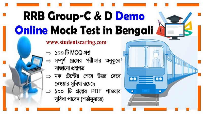 স্টুডেন্টস কেয়ারের পক্ষ থেকে স্বাগতম জানাই সকলকে। আপনারা সকলেই জানেন, রেলওয়ে গ্রুপ ডি পরীক্ষাটি সারা ভারত ব্যাপী অনলাইন ব্যবস্থার মাধ্যমে হবে। হয়ত অনেকেই আছেন যেনারা অনলাইনে পরীক্ষা দেওয়ার অভিজ্ঞতা নেই বা থাকলেও খুব বেশি নেই। তাই ভারতীয় রেলওয়ের পরীক্ষা প্রস্তুতির জন্য অনলাইনে মক টেস্ট দিয়ে নিজেদের প্রস্তুত করে নিন। যাচাই করে নিন আপনারা প্রস্তুতির কোন পর্যায়ে রয়েছেন। আপনাদের সুবিধার জন্য আমরা একটি মক টেস্টের আয়োজন করেছি Railway Group-C & D Demo Online Mock Test in Bengali ।