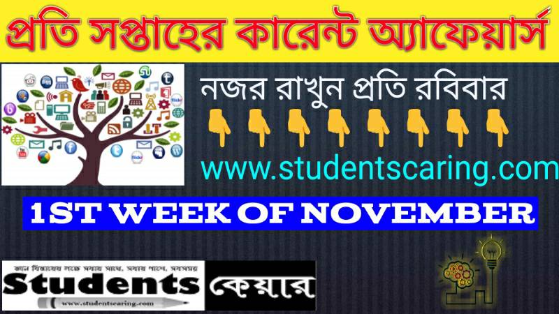 পশ্চিমবঙ্গ তথা ত্রিপুরার সকল চাকরীর পরীক্ষার্থীদের কথা মাথায় রেখে আমরা প্রতি সপ্তাহের গুরুত্বপূর্ণ খবরগুলি আপনাদের সামনে তুলে ধরব। আমাদের সাইটে প্রতি রবিবার নজর রাখবেন ‘সাপ্তাহিক কারেন্ট অ্যাফেয়ার্স (Weekly Current Affairs) বিভাগে’। আজকে ২৯শে অক্টোবর থেকে ৫ই নভেম্বর পর্যন্ত যাবতীয় তথ্য আপনাদের সামনে তুলে ধরলাম।